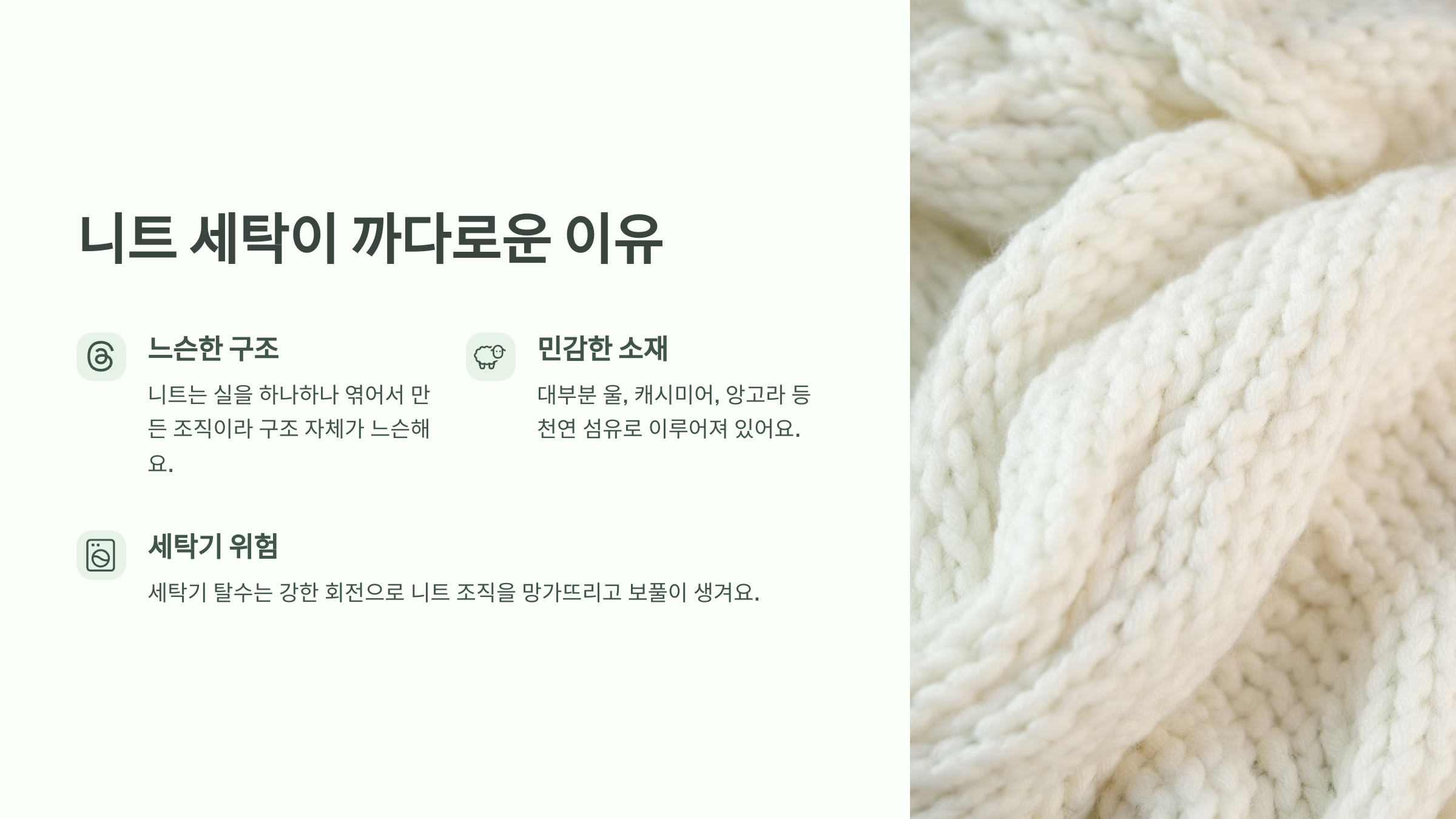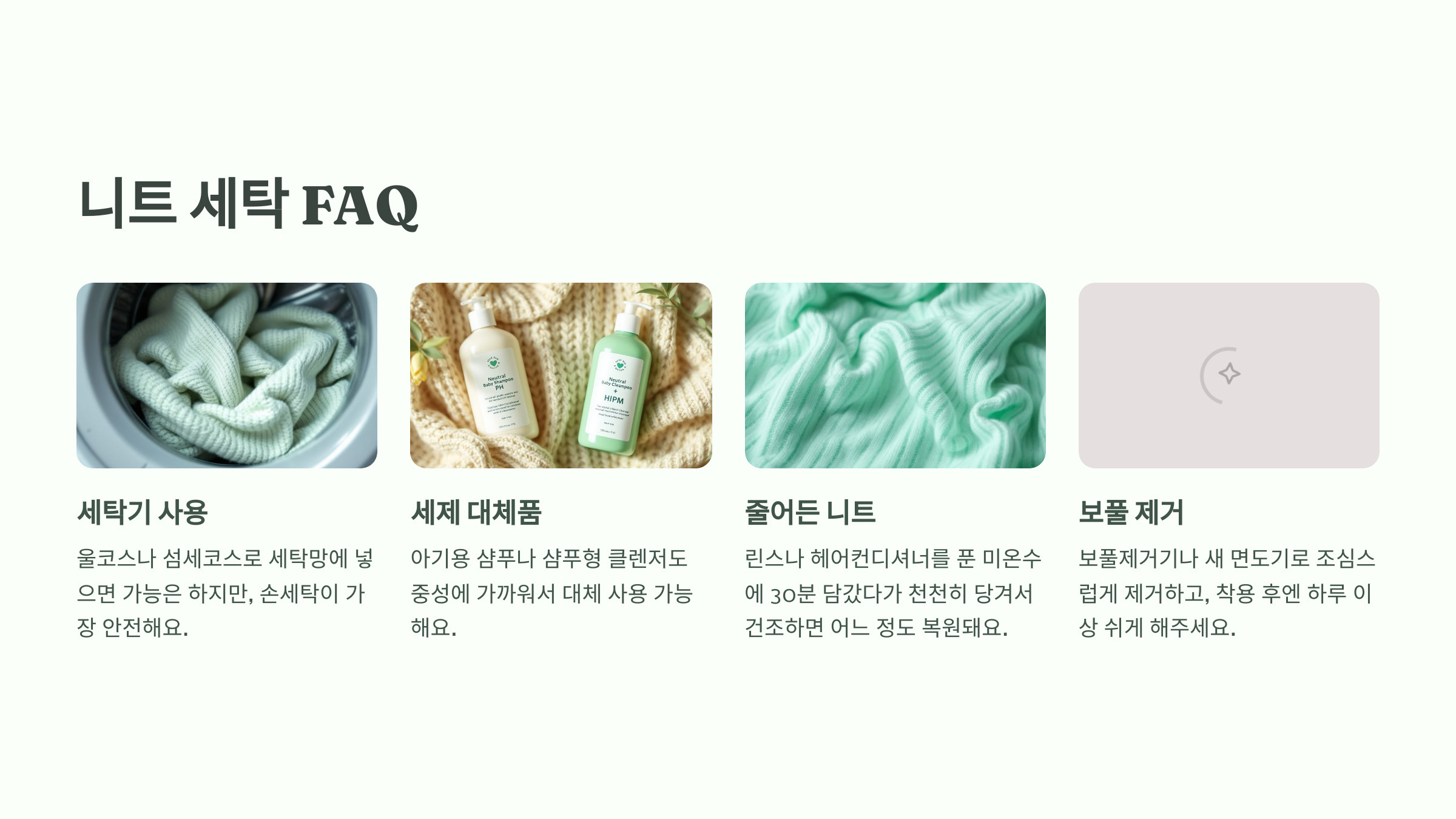 💡 아래부터는 누구나 따라 하기 쉬운 니트 세탁 핵심 노하우예요. 표와 함께 정리했으니 바로 활용해보세요
