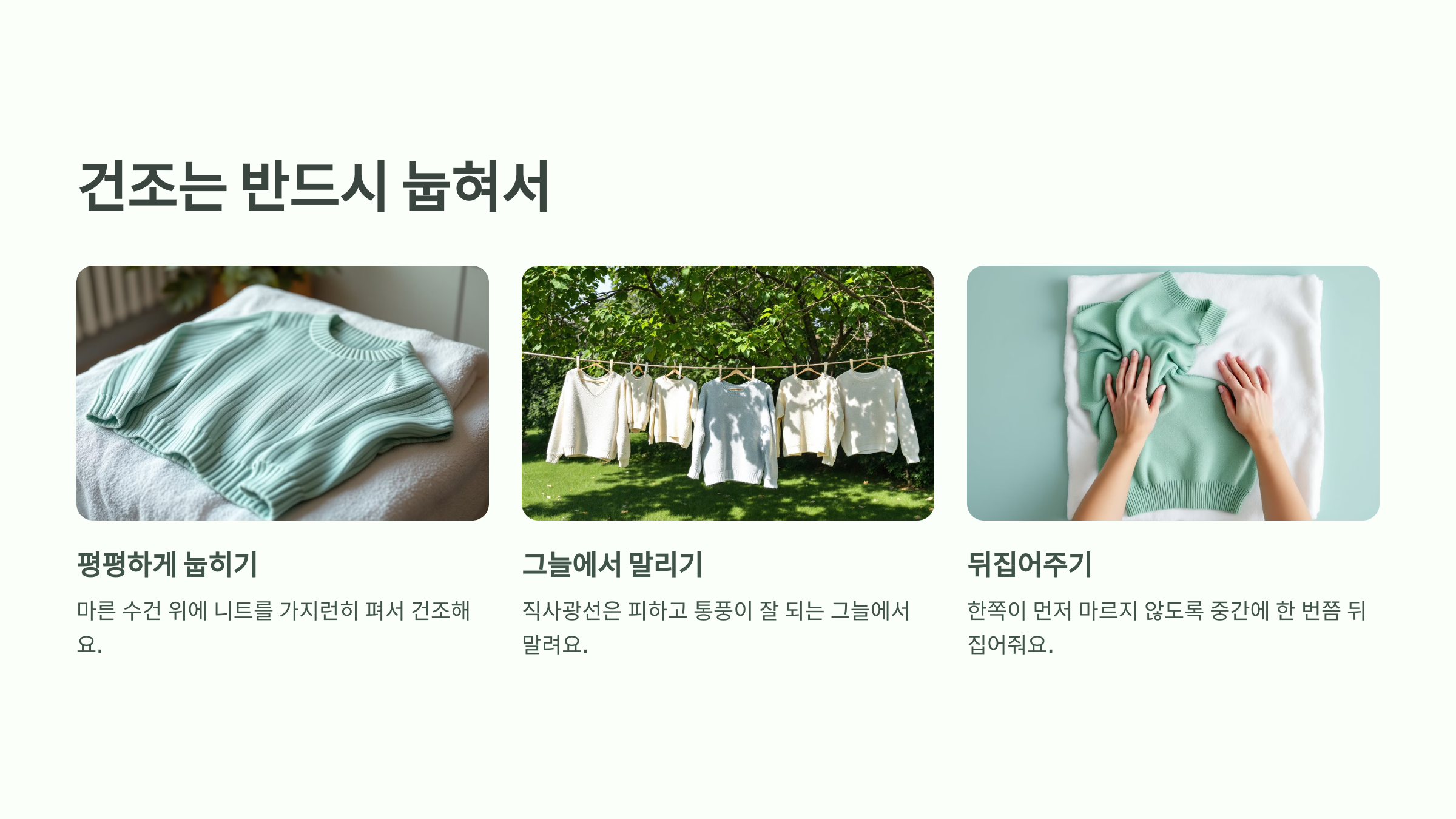 이렇게 하면 수분은 빠지면서도 니트의 원형은 그대로 유지할 수 있어요. 진짜 간단하면서 효과적인 방법이에요
