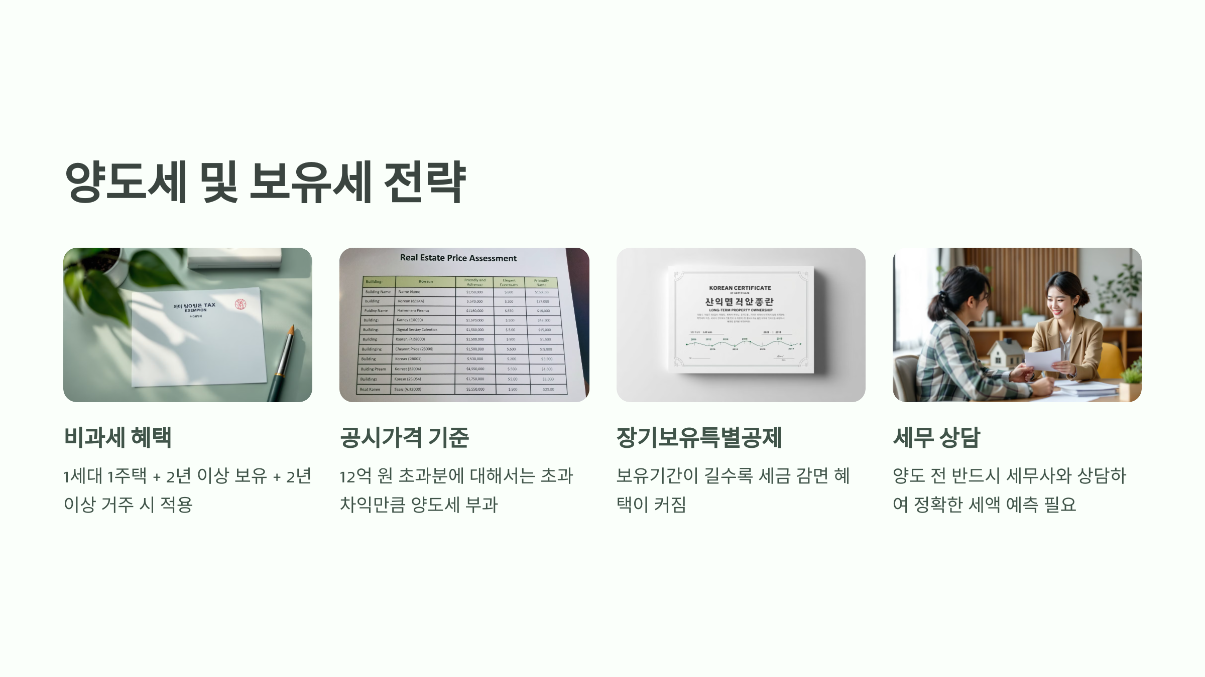 보유세에는 종합부동산세도 포함돼요. 1주택자라도 공시가격이 일정 금액을 초과하면 종부세 납부 대상이 될 수 있어요. 2025년부터는 종부세 기준 완화가 예정돼 있지만, 고가주택은 여전히 주의해야 해요.