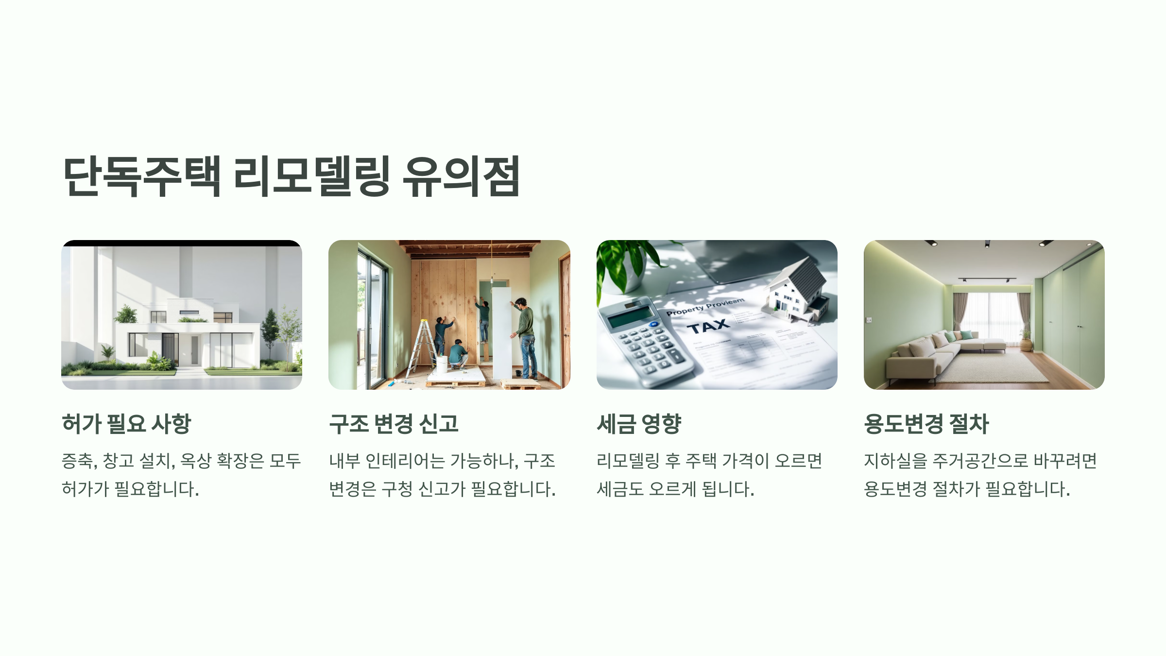 단독주택의 큰 장점은 구조 변경이 자유롭다는 점이에요. 하지만 리모델링할 때 법적인 제약과 세금 문제를 함께 고려하지 않으면 낭패를 볼 수 있어요. 특히 증축, 창고 설치, 옥상 확장 같은 작업은 모두 허가가 필요한 경우가 많아요.