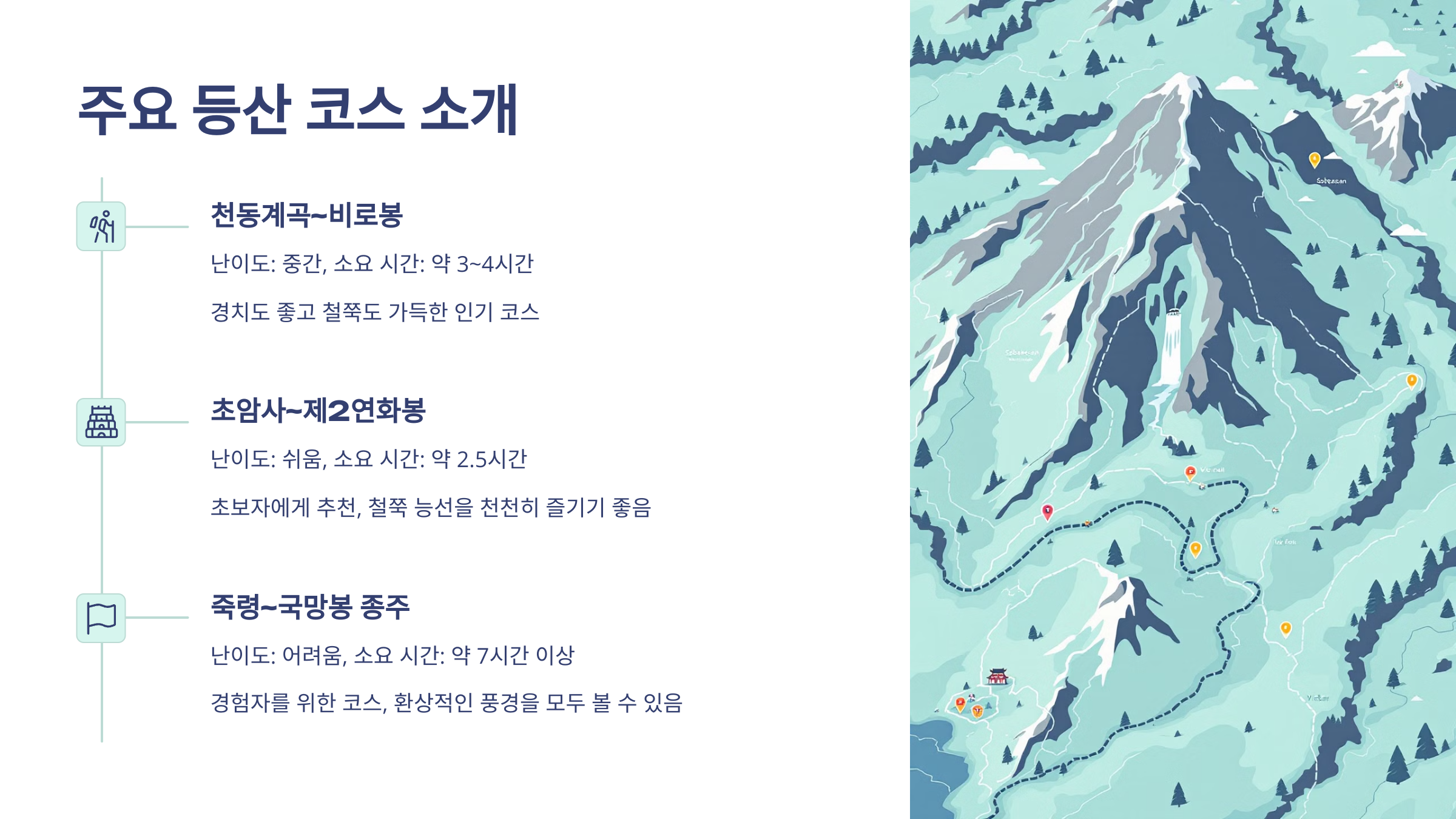 각 코스는 탐방지원센터에 들러 지도와 날씨, 상황을 확인하고 오르면 안전해요. 국립공원 안내 앱이나 QR코드로 현재 위치도 파악할 수 있어서 추천해요.