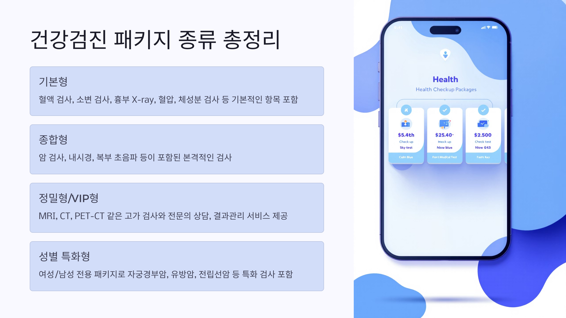 또 요즘은 여성 전용 건강검진 패키지나 남성 전용 패키지도 따로 준비돼서, 성별에 맞게 꼭 필요한 검사를 받을 수 있도록 세분화되고 있어요. 자궁경부암, 유방암, 전립선암 같은 특화 검사가 대표적이랍니다.
