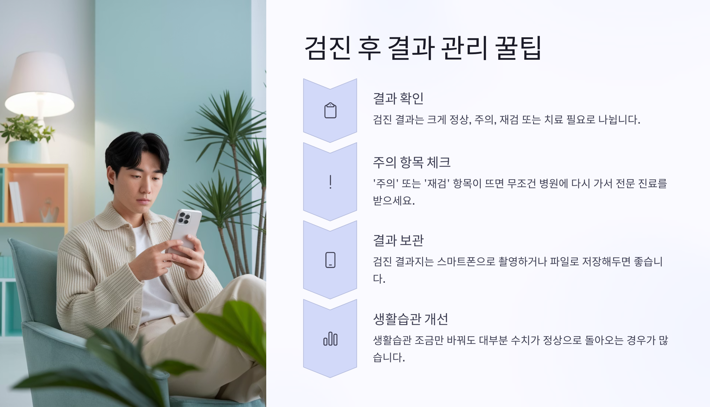 이제 건강검진 결과가 나오고 나서 어떻게 관리하면 좋을지 알려줄게요. 검진 후 관리까지 제대로 해야 진짜 건강 챙기는 거니까요! 😄