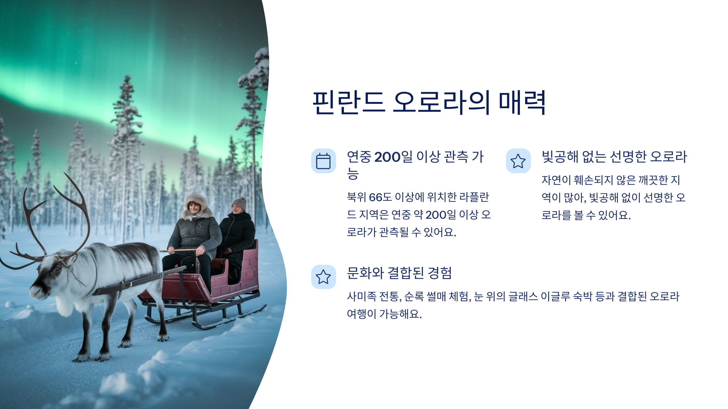 핀란드는 세계에서 오로라 관측이 가장 쉬운 나라 중 하나예요. 북위 66도 이상에 위치한 라플란드 지역은 연중 약 200일 이상 오로라가 관측될 수 있는 곳이죠. 이건 정말 놀라운 숫자예요! 그만큼 성공 확률이 높다는 의미예요.