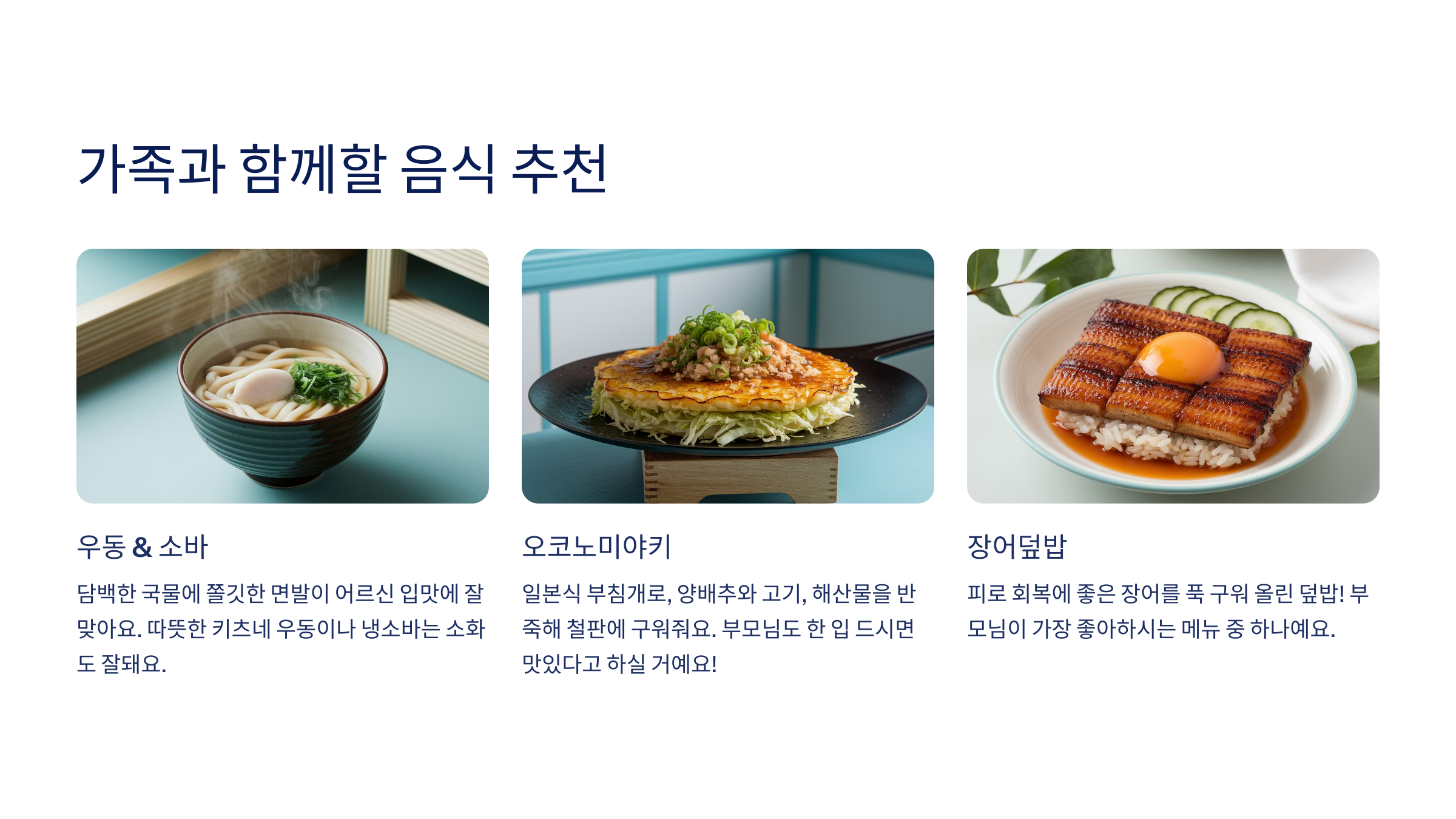 부모님과 떠나는 여행에서 가장 중요한 건 ‘입에 잘 맞는 음식’이에요. 오사카는 한국인의 입맛에 딱 맞는 메뉴가 많아서 효도여행지로 정말 최고예요! 너무 자극적이지 않으면서도 맛은 확실한 메뉴들만 골라봤어요 😋