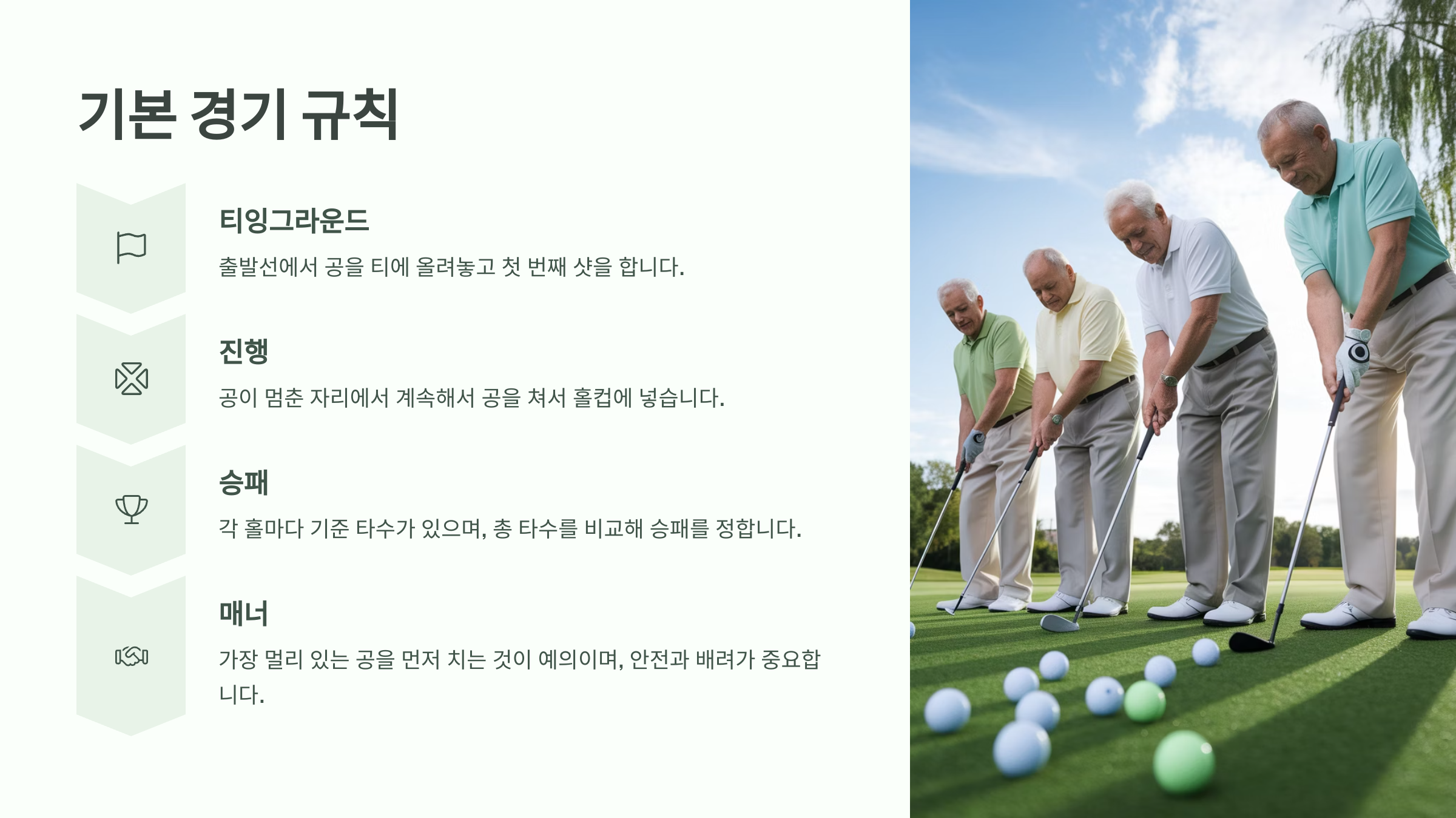 👇 아래로 스크롤하면 파크골프의 모든 룰이 이어집니다!
