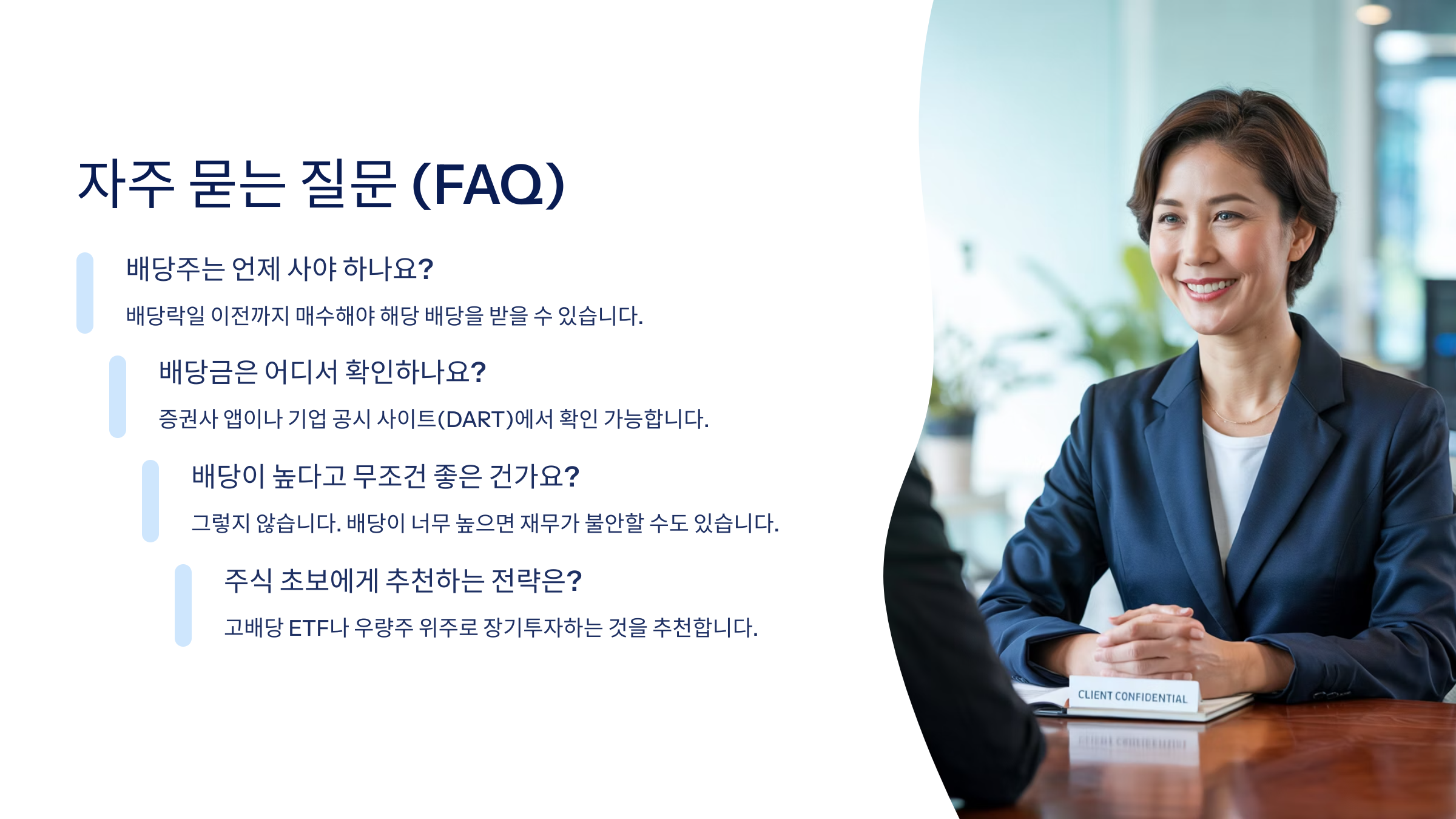 A4. 그렇지 않아요! 배당이 너무 높으면 재무가 불안할 수도 있어서 확인이 필요해요.