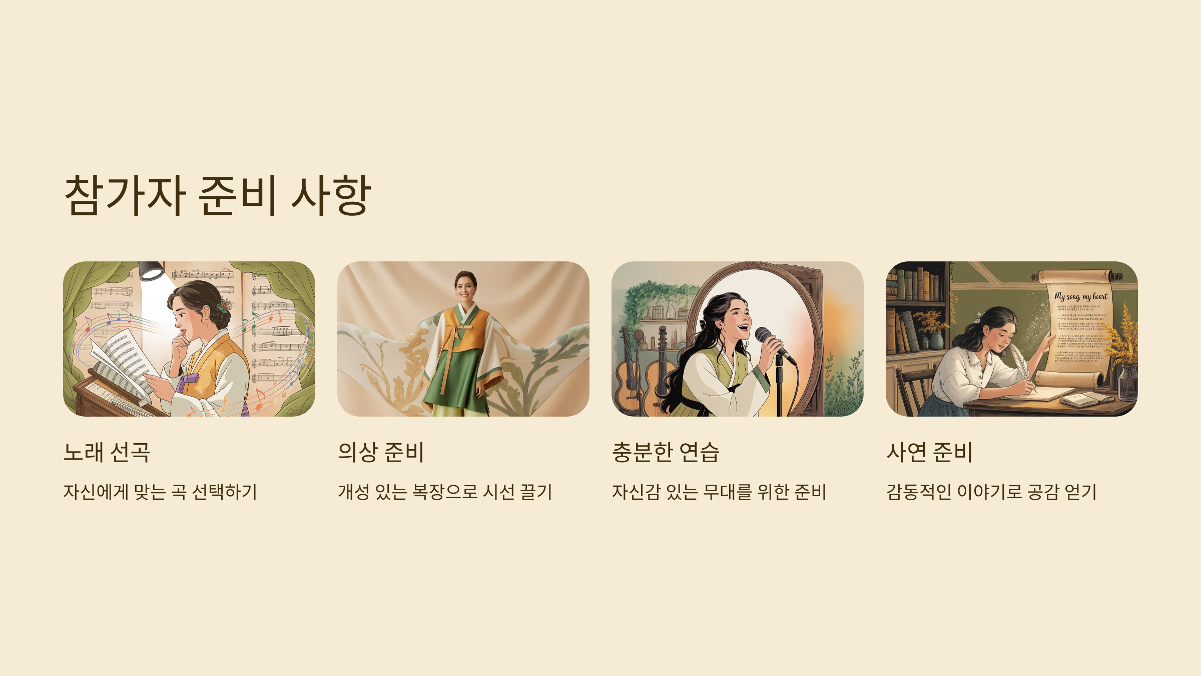 전국노래자랑의 가장 큰 매력 중 하나는 바로 누구나 참여할 수 있다는 점입니다. 제천시편 역시 예외가 아닙니다. 참가 자격은 일반시민, 직장인, 학생 등 제약 없이 누구나 신청할 수 있습니다. 단, 기성가수(대한가수협회, 한국가수협회 회원 등)는 참가가 불가하다는 점을 유의해야 합니다.