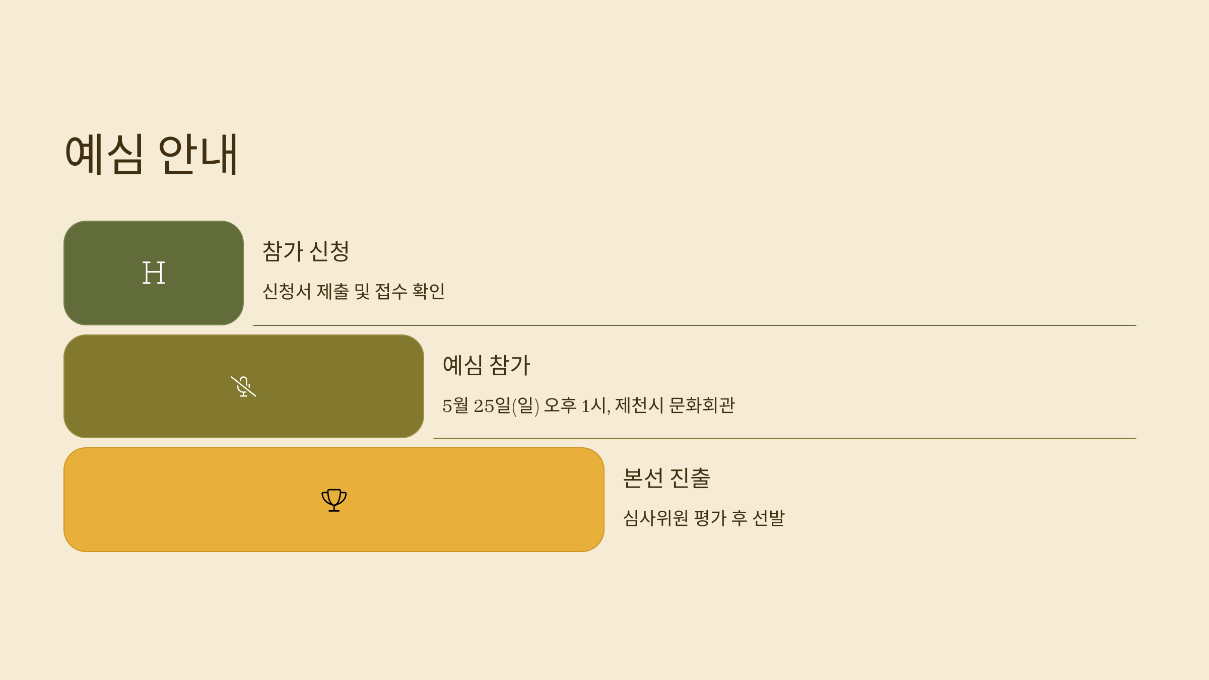 전국노래자랑은 누구나 신청할 수 있지만, 방송 출연을 위한 예심이 필수입니다. 예심은 본 무대가 열리기 이틀 전인 2025년 5월 25일(일) 오후 1시, 제천시 문화회관에서 열립니다. 이 자리에서 참가자들은 심사위원 앞에서 자신의 실력을 뽐내며 본 무대에 오를 기회를 얻게 됩니다.