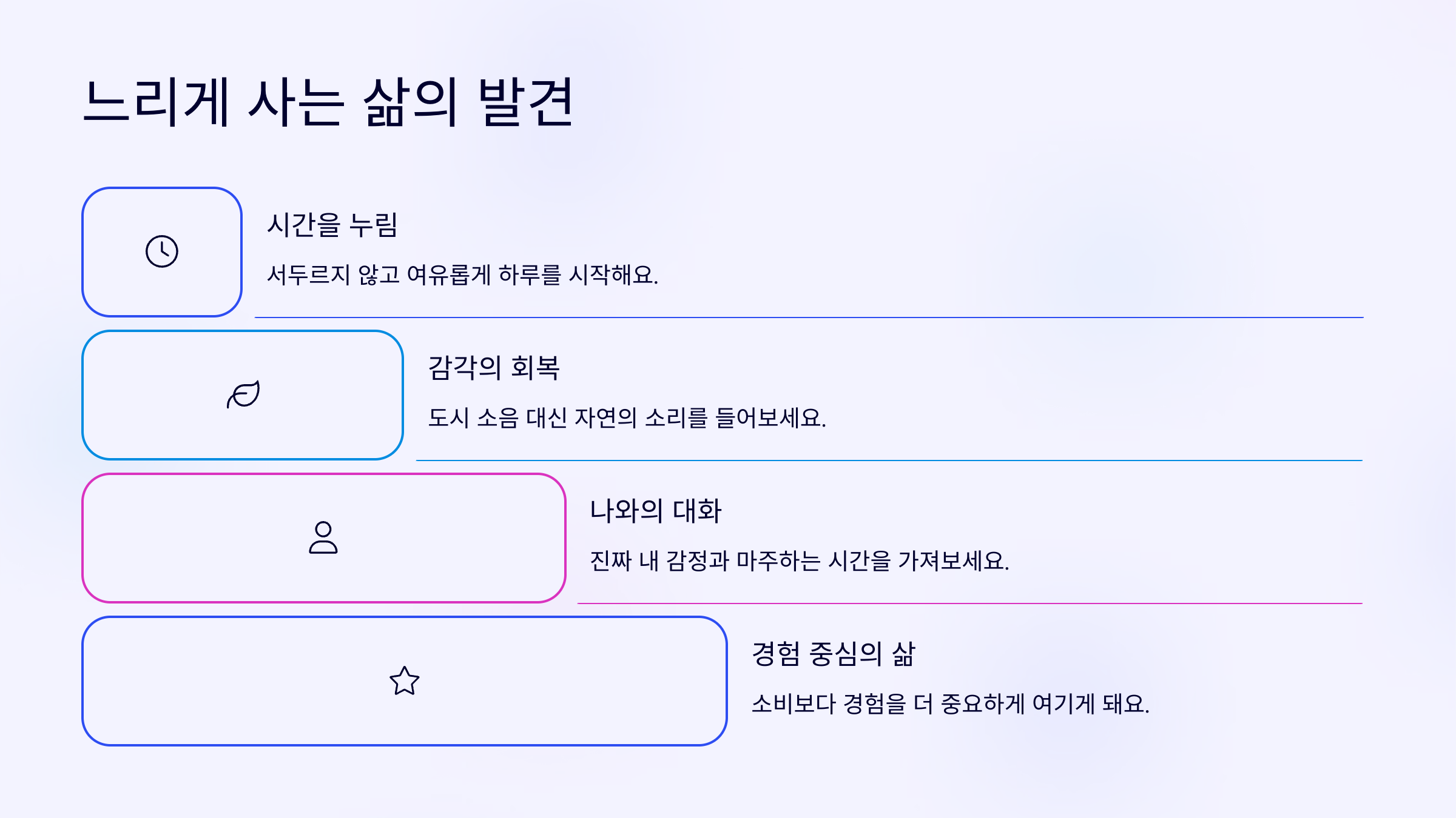 이제 우리는 더 이상 '바쁘게만 사는 삶'을 당연하게 여겨선 안 돼요. 잠시 멈추고 나를 돌아볼 수 있는 시간, 그것이 진짜 삶의 여유라고 느껴져요. 이 한달이 우리 삶을 1도씩 천천히 바꾸는 시작점이 되어준다면, 그 자체로 충분히 가치 있는 여정인 거예요. 🌿