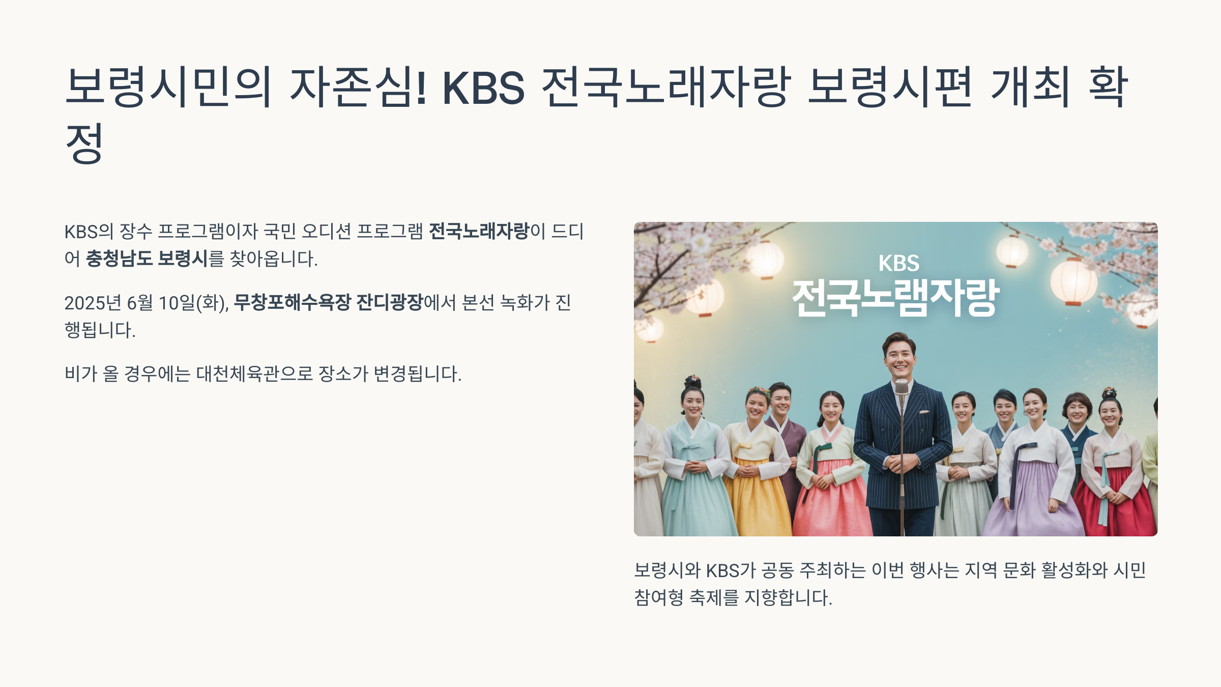 📢 보령시민의 자존심! KBS 전국노래자랑 보령시편 개최 확정