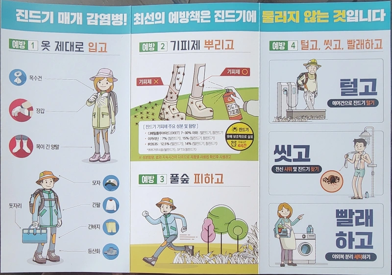 진드기 감염병은 예방이 가장 중요해요. 감염병 대부분은 백신이나 치료제가 없기 때문에, 진드기에 물리지 않도록 사전 대비를 철저히 하는 것이 최선의 방어예요.