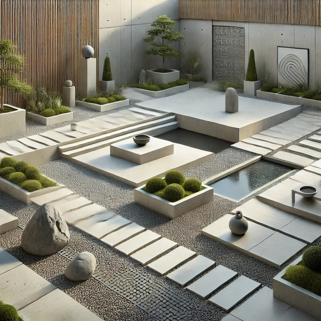 현대적인 정원은 깔끔하고 미니멀리즘적인 디자인을 특징으로 합니다. 직선형의 구조물, 모던한 재료, 단순한 색상 팔레트 등이 포함됩니다.