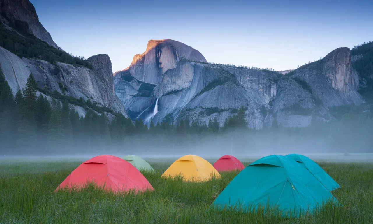 요세미티는 거대한 하프돔과 폭포, 천연 암벽들이 어우러진 미국 내 가장 인기 있는 국립공원입니다. 특히 Upper Pines Campground는 계곡과 숲 속에 위치해 아침이면 안개 속에서 웅장한 자연이 깨어나는 모습을 감상할 수 있습니다.