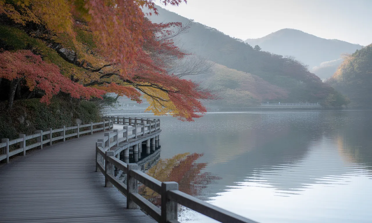 중간중간 ‘사랑의 나무’나 ‘소망의 종’처럼 아기자기한 포인트도 있어서 가족, 연인과의 추억 여행지로도 참 좋아요. 가을이면 단풍이 호수에 비쳐 마치 수채화처럼 풍경을 물들이고, 겨울엔 적막함마저 아름답게 느껴져요. 계절마다 전혀 다른 매력을 느낄 수 있다는 게 산막이옛길의 진짜 장점이에요.