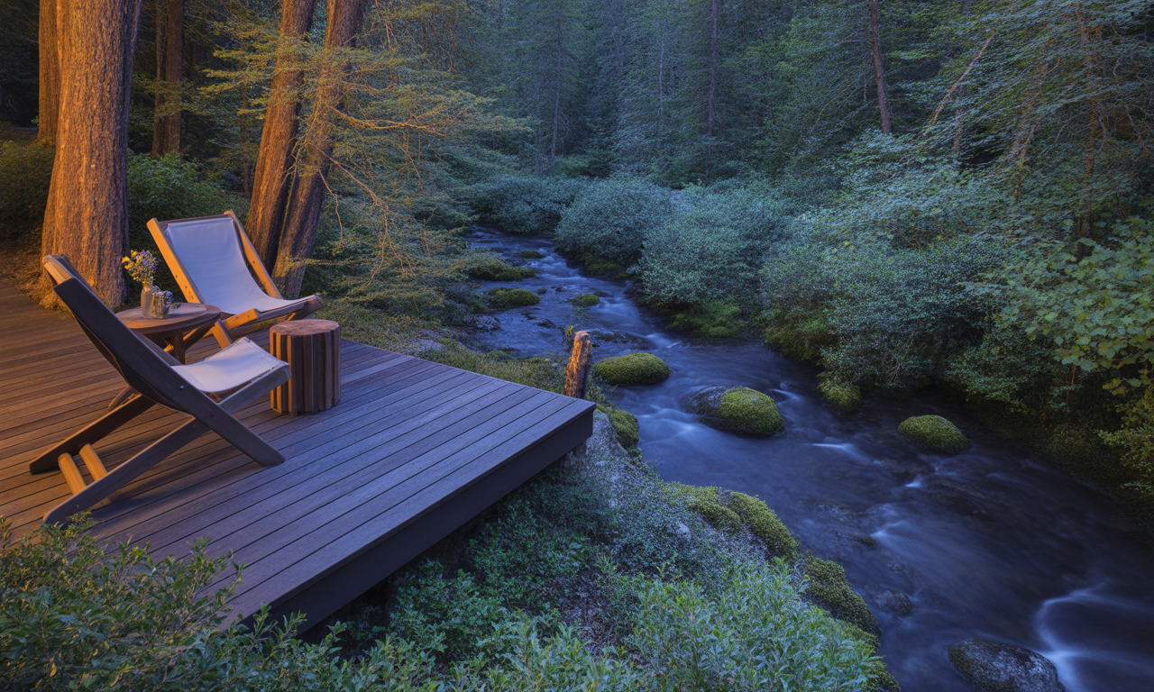 ‘계곡 바로 앞 데크’는 커플 캠핑장에서 가장 인기 있는 자리예요. 물소리를 들으며 눈을 뜨고, 물에 발 담그며 차 한잔 할 수 있는 낭만적인 하루를 보내게 해줘요.