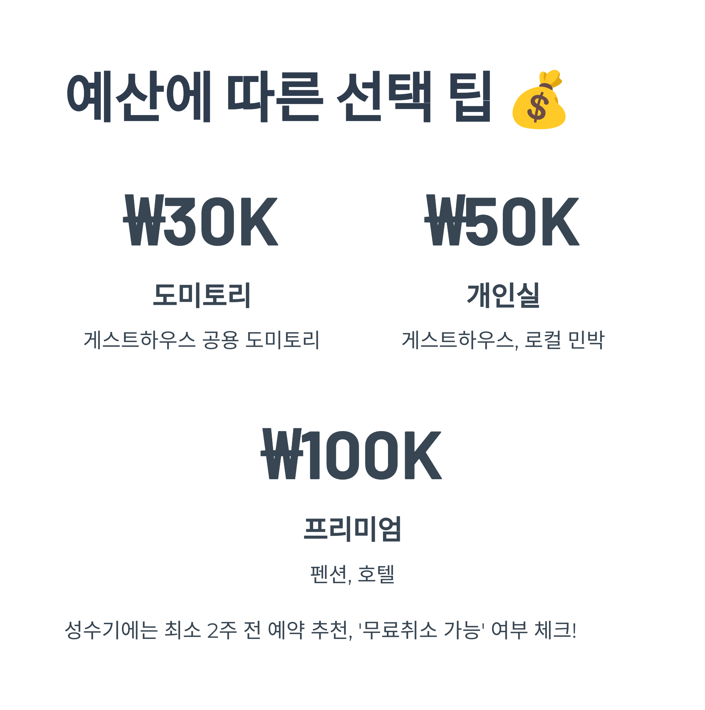 예산 구간 추천 숙소 유형 1박 예상 비용