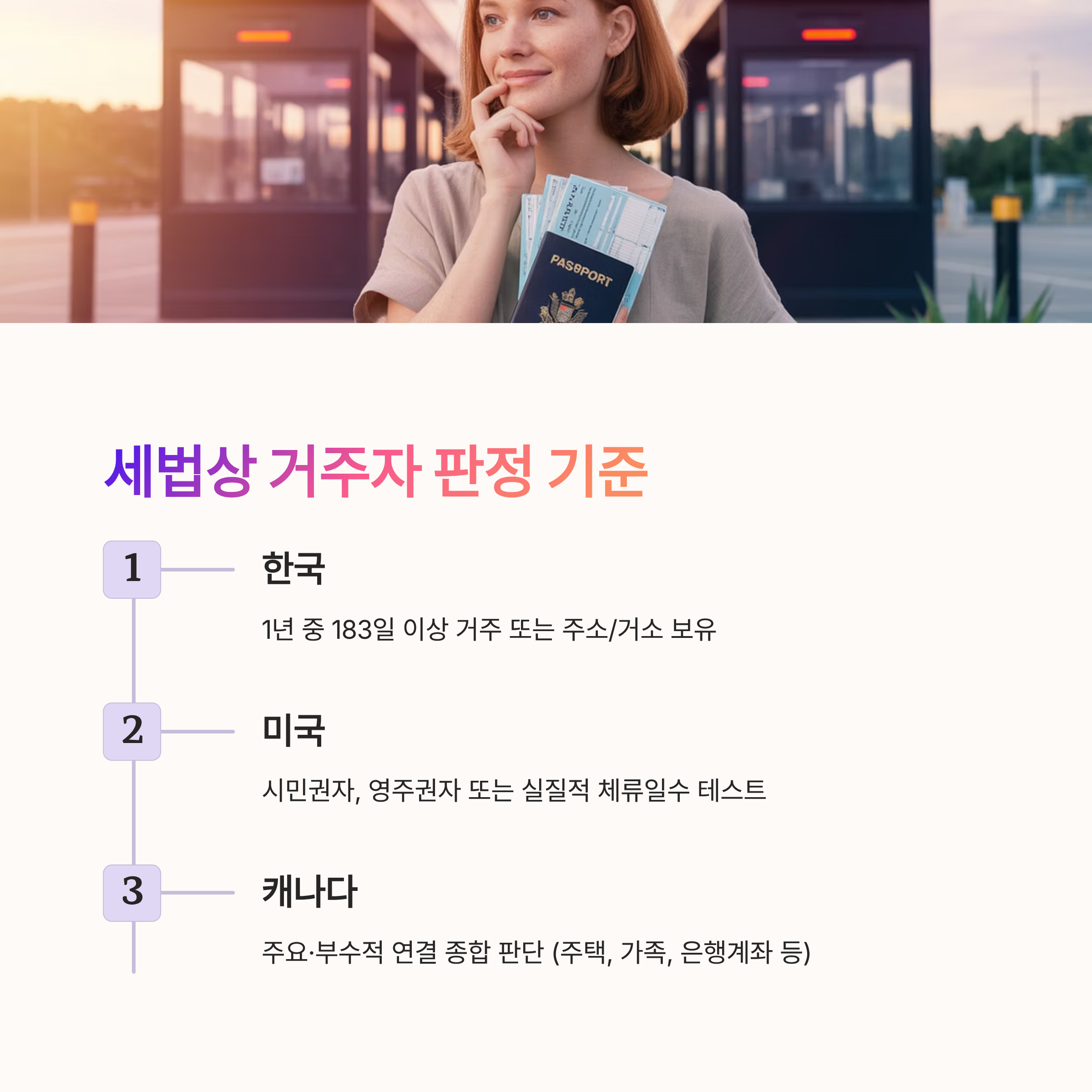 세법상 거주자 판정은 이민과 세금 문제에서 핵심적인 요소예요. 단순히 물리적으로 해외에 거주한다고 해서 자동으로 ‘비거주자’가 되는 건 아니에요. 각 국가는 거주자 여부를 판단하기 위해 다양한 기준을 두고 있어요.