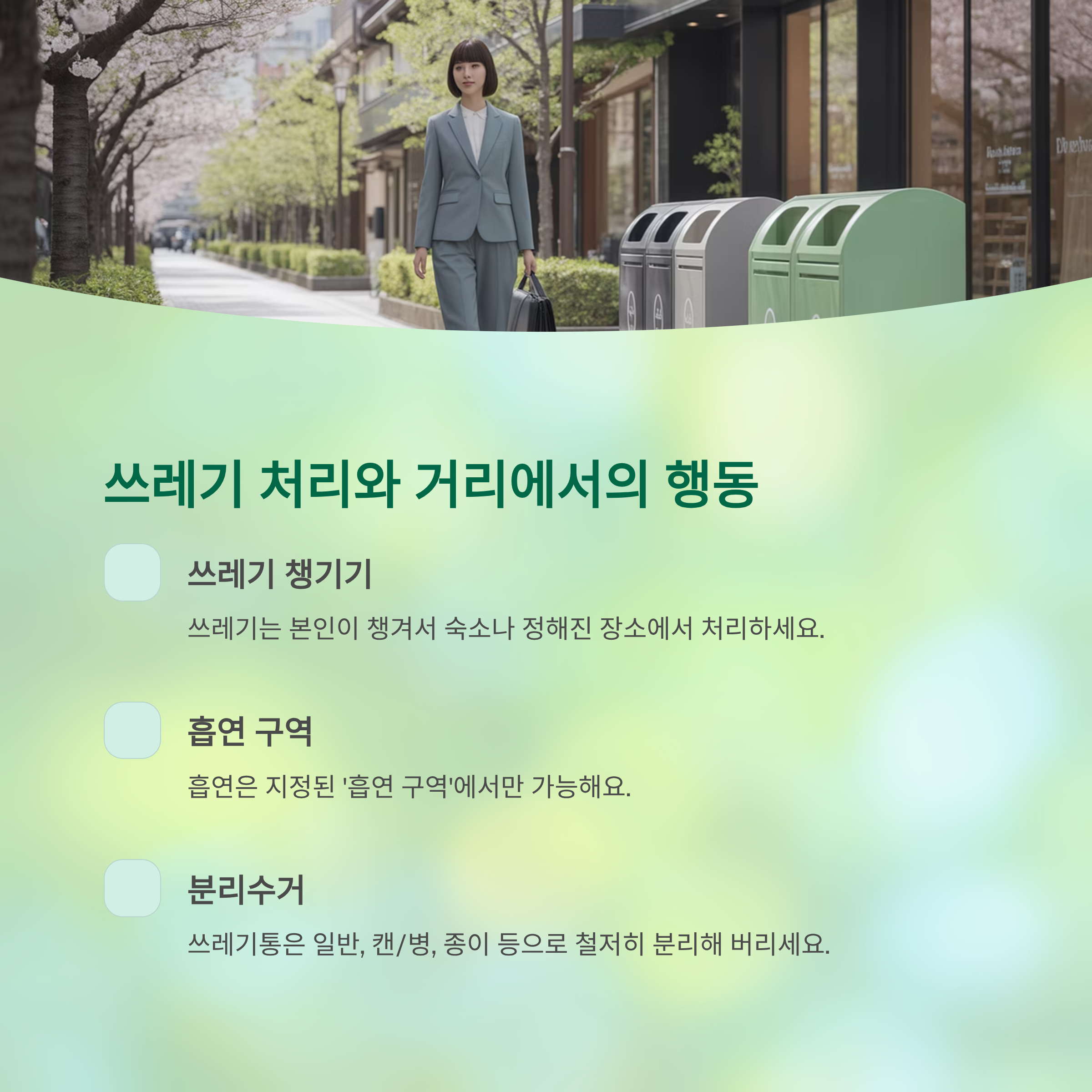 특히 손가락으로 사람을 가리키는 행동이나 공공장소에서 씹는 껌을 버리는 행위는 일본에서는 무례한 행동으로 여겨져요. 작은 행동 하나에도 신중함이 필요한 나라예요 ✋