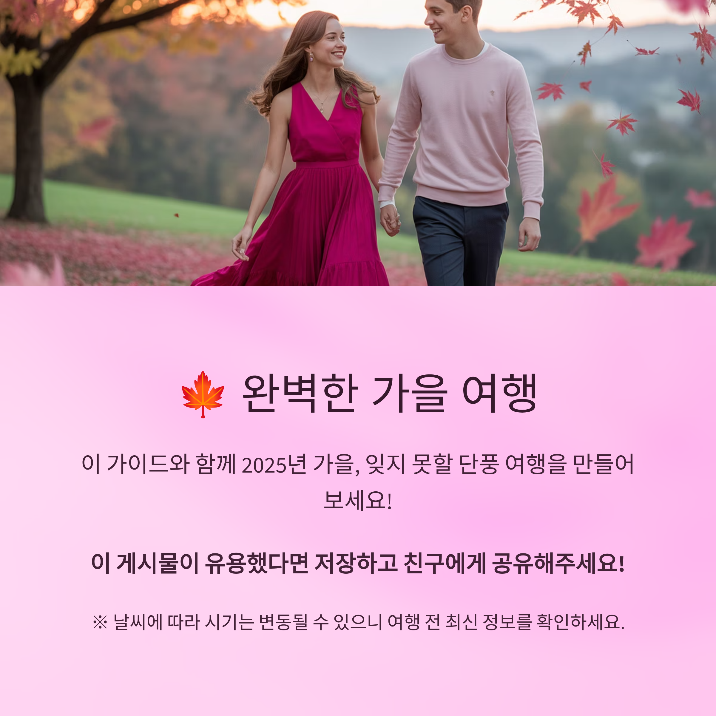 이번 가이드는 지역별 평균 폭을 넉넉히 적어 두었어요. 평년보다 초가을이 따뜻하면 전반적으로 3~7일 늦어지는 경향이 있고, 반대로 이른 한기가 내려오면 최대 7~10일 앞당겨질 수 있어요. 일정은 ±7일 여유를 두고 잡는 걸 추천해요.