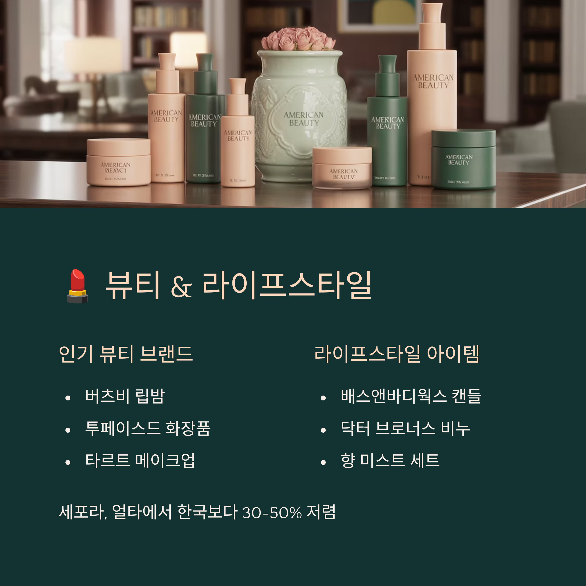 이제 다음은 미국 뷰티 & 라이프스타일 제품들이에요! 이거 잘 고르면, 진짜 감탄 듣는 선물이 될 수 있어요 ✨