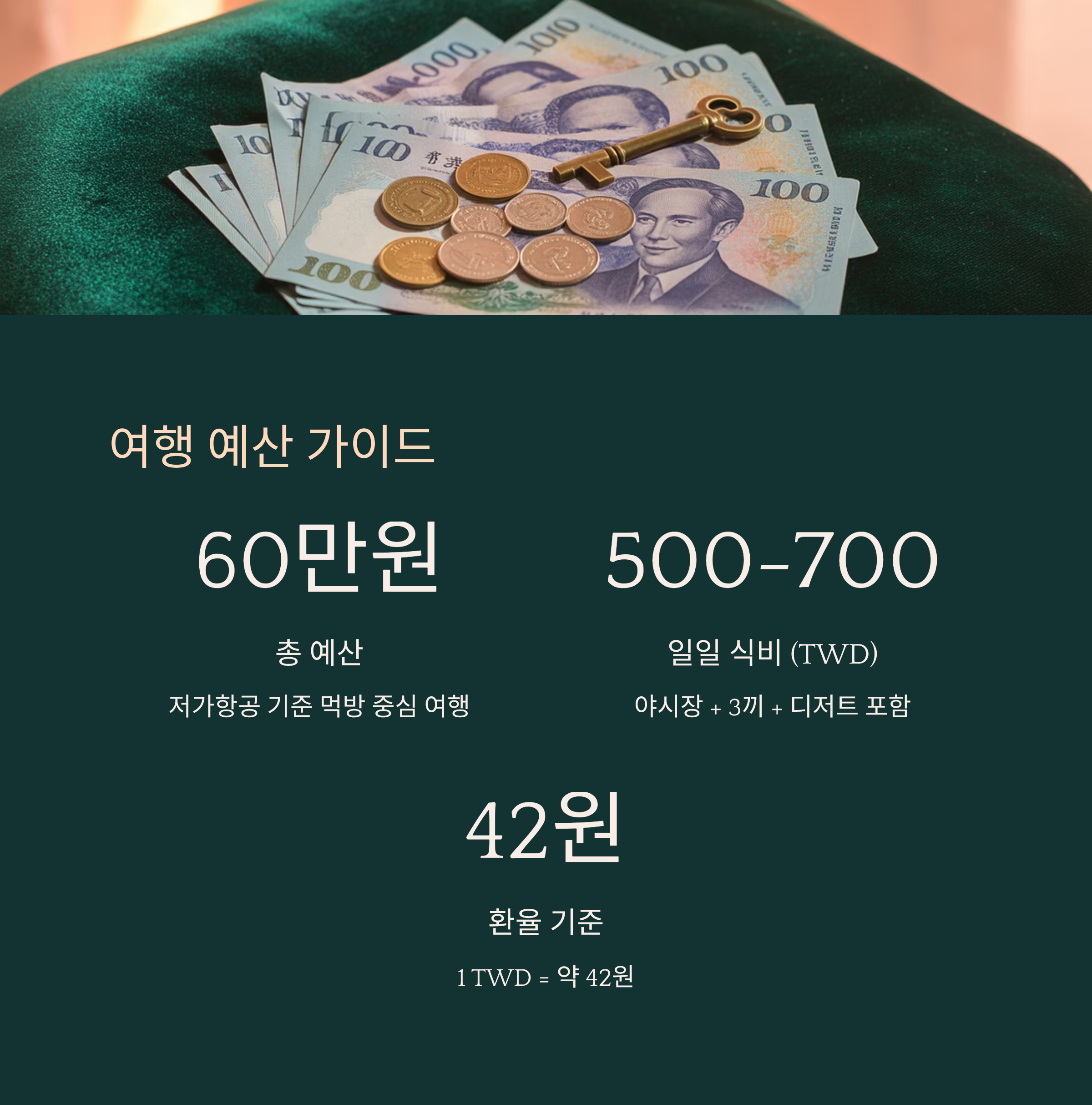 환율은 1 TWD = 약 42원 기준으로 계산했어요. 여행 시점의 환율에 따라 달라질 수 있으니, 출발 전 확인은 필수! 💱