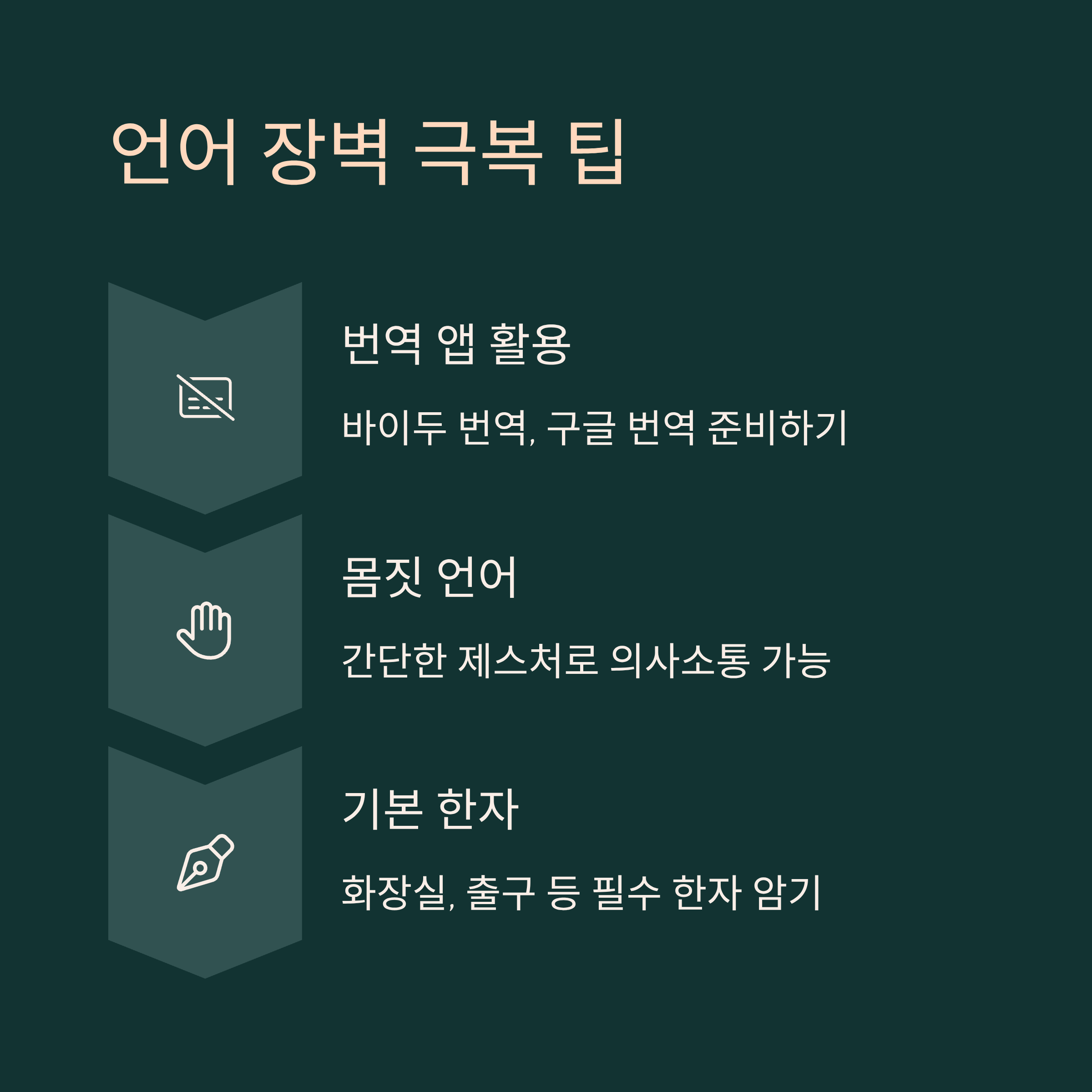 대도시에서는 영어를 사용하는 젊은 세대가 점점 늘고 있지만, 식당, 전통 시장, 교통기관에서는 영어 사용이 거의 불가능한 경우도 많아요. 이럴 땐 번역 어플을 적극 활용하는 게 좋아요. 특히 ‘바이두 번역’이나 ‘웨이보 번역기’ 같은 현지 앱은 중국어 인식률이 좋아서 유용하답니다.