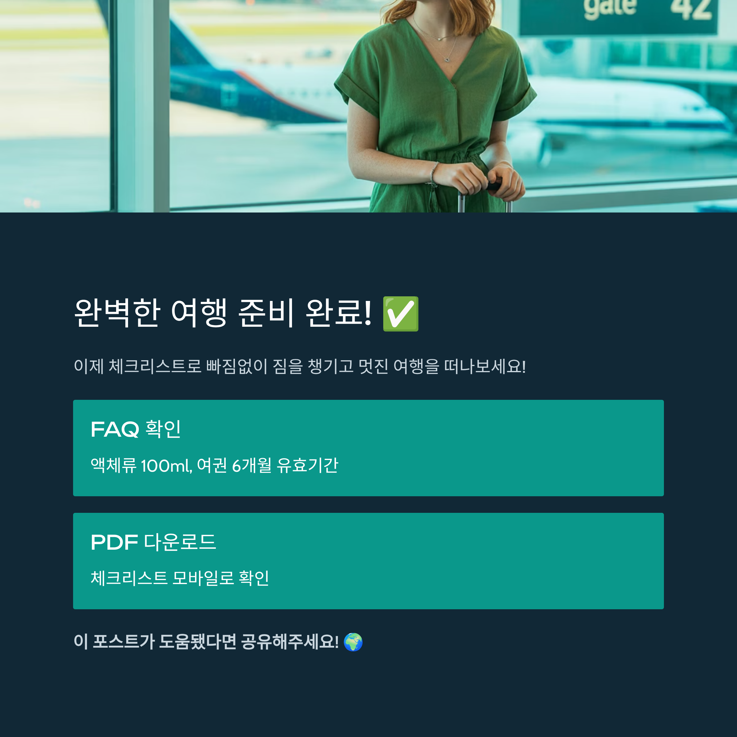 | 여권 | 유효기간 6개월 이상 | ✅ |