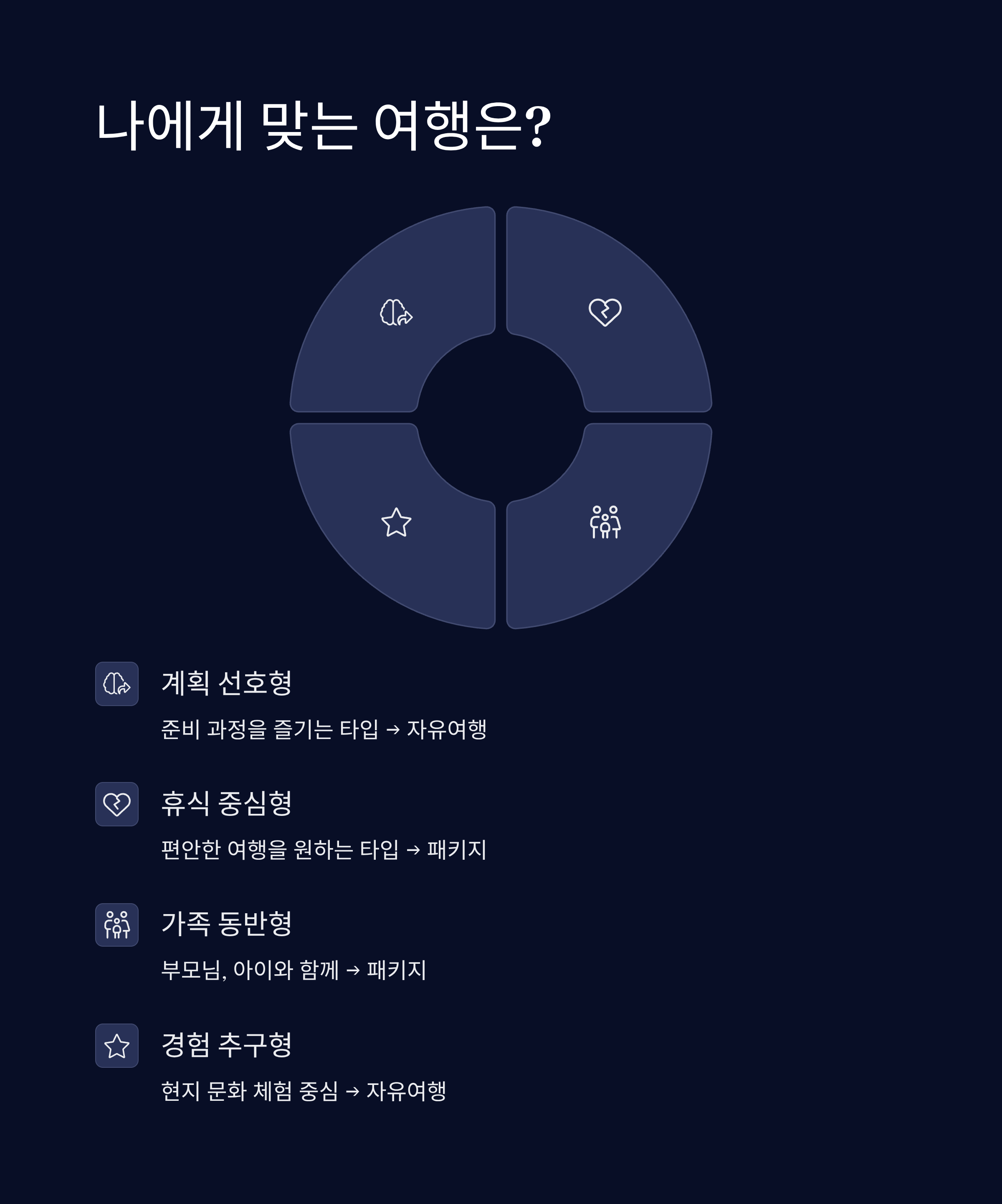 | 여행자 유형 | 추천 이유 | 주요 목적지 |