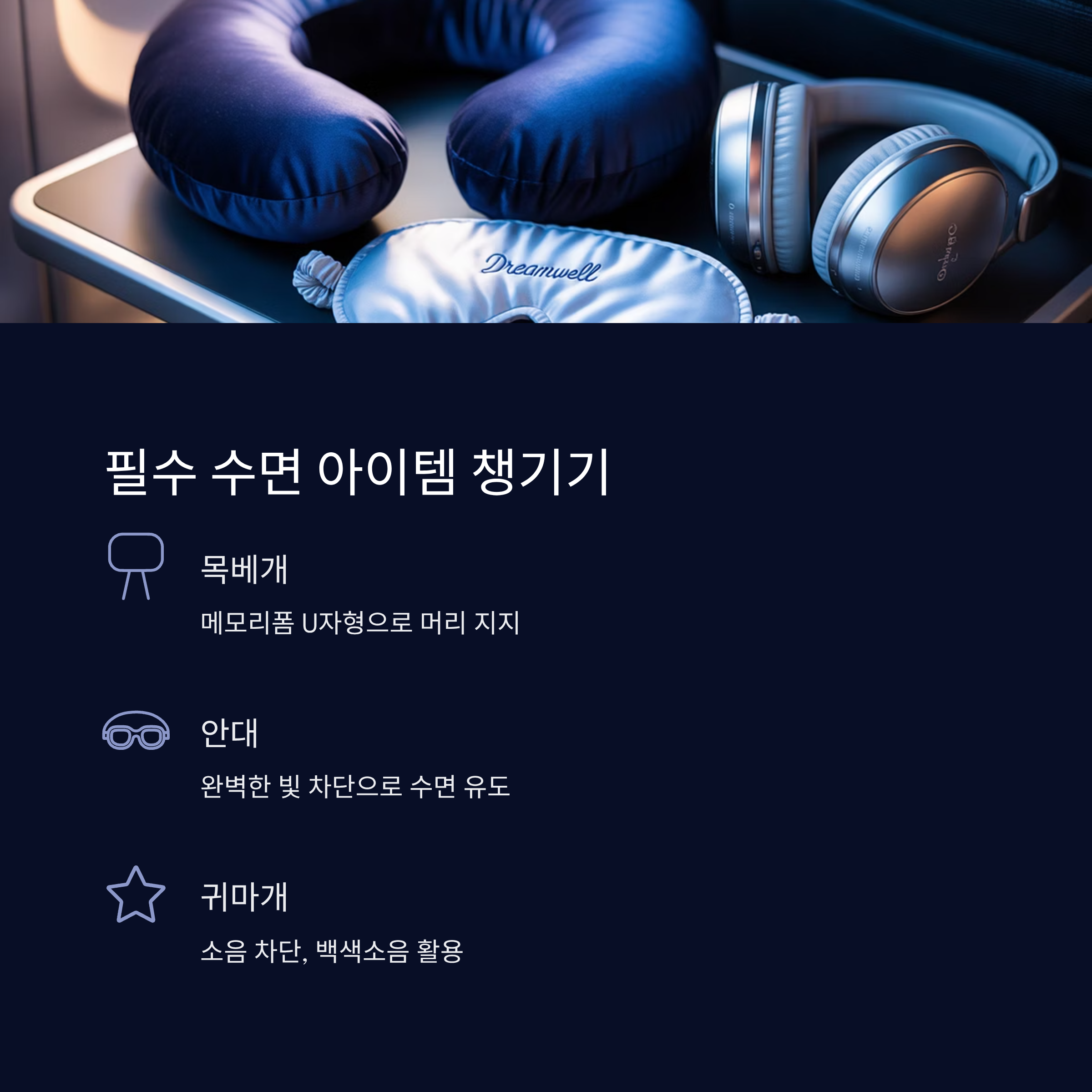 기내 꿀잠을 위한 준비물은 생각보다 단순하지만 강력해요. 특히 해외 여행을 자주 가는 사람들은 꼭 챙기는 아이템이 몇 가지 있는데, 바로 ‘목베개’, ‘안대’, ‘귀마개’예요.