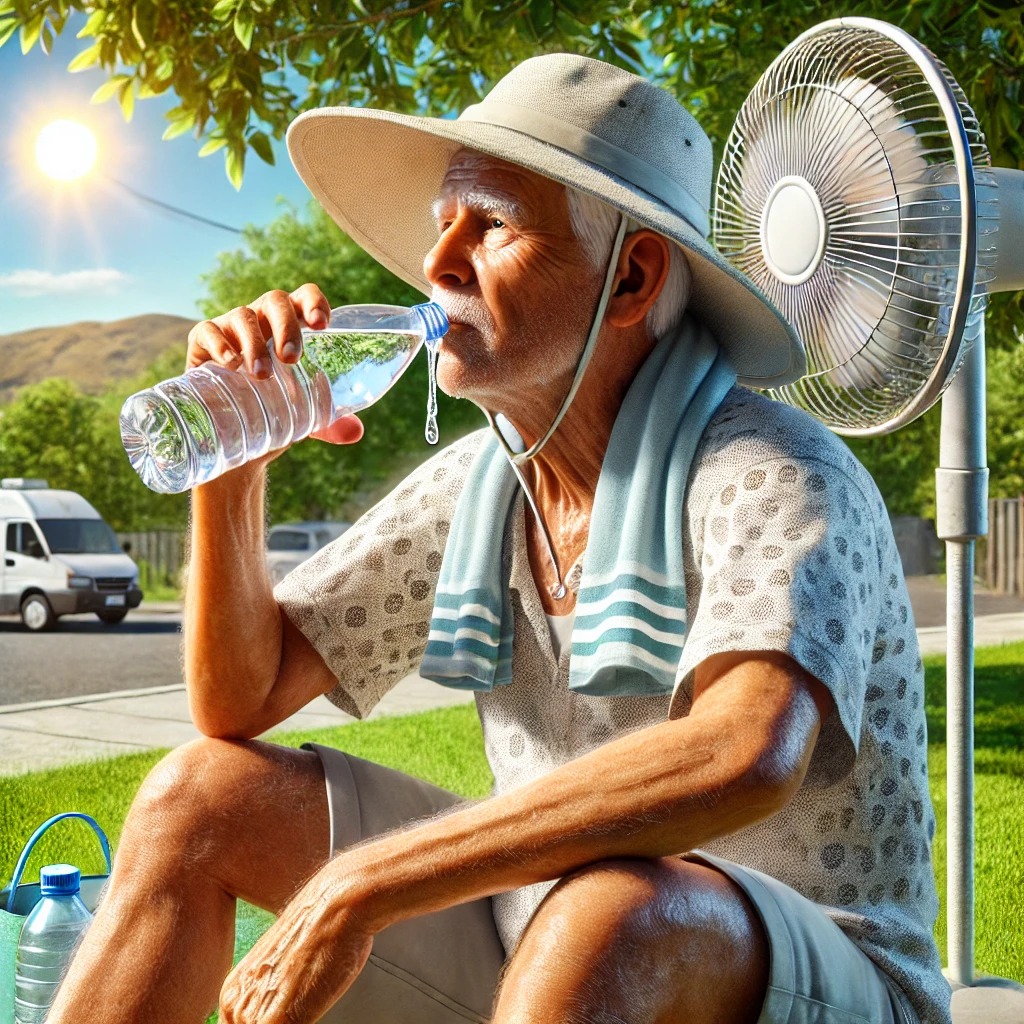 노인은 땀샘의 감소로 인해 체온 조절이 어렵습니다. 무리한 신체활동을 피하고, 시원한 곳에서 지내는 것이 좋습니다.