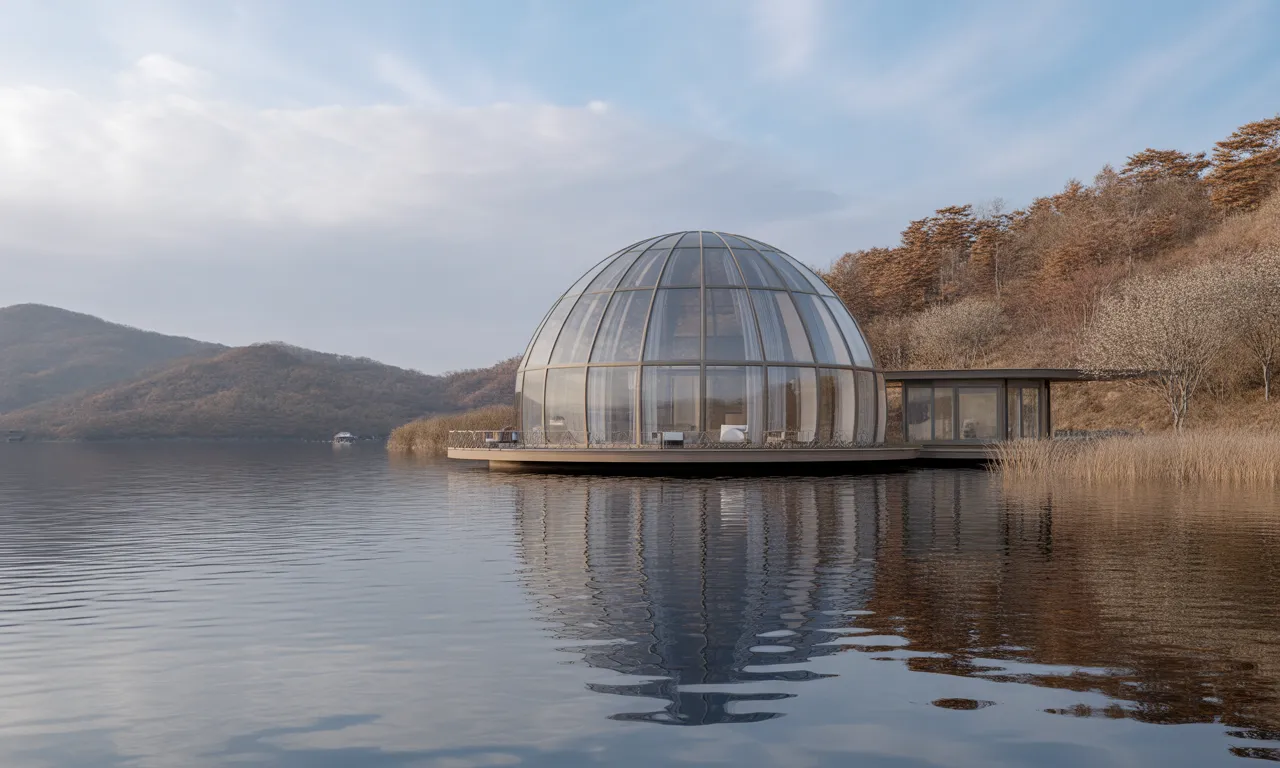 | 플로팅 돔하우스 | 물 위에 떠 있는 반구형 구조 | ★★★★★ | 봄~가을 | 중간 |