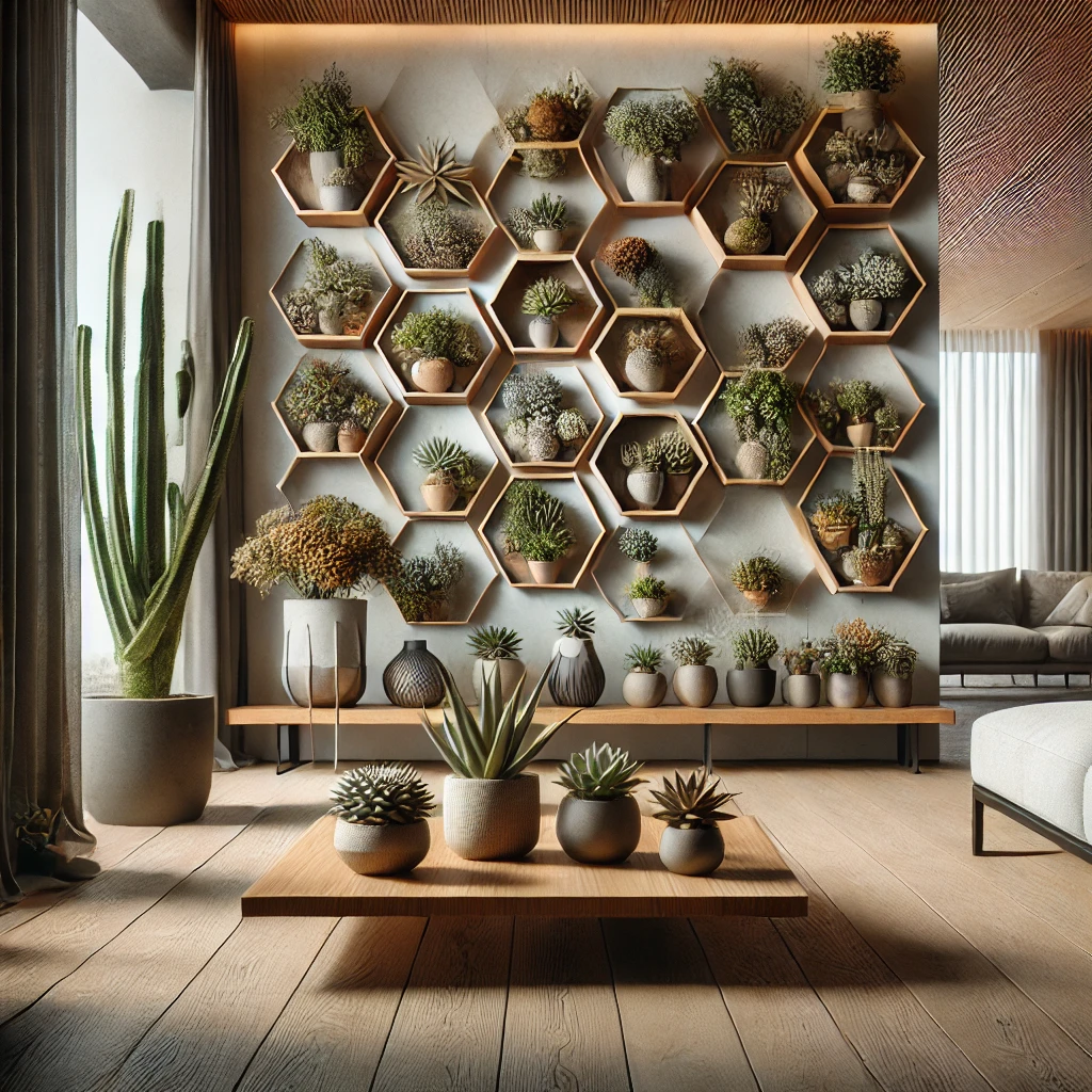 벽에 걸 수 있는 작은 화분에 다육이를 심어 벽걸이 화분을 만들어보세요. 공간을 절약하면서도 녹색의 생기를 더할 수 있는 방법입니다. 여러 개의 벽걸이 화분을 조합하여 독특한 벽 장식을 완성할 수 있습니다.
